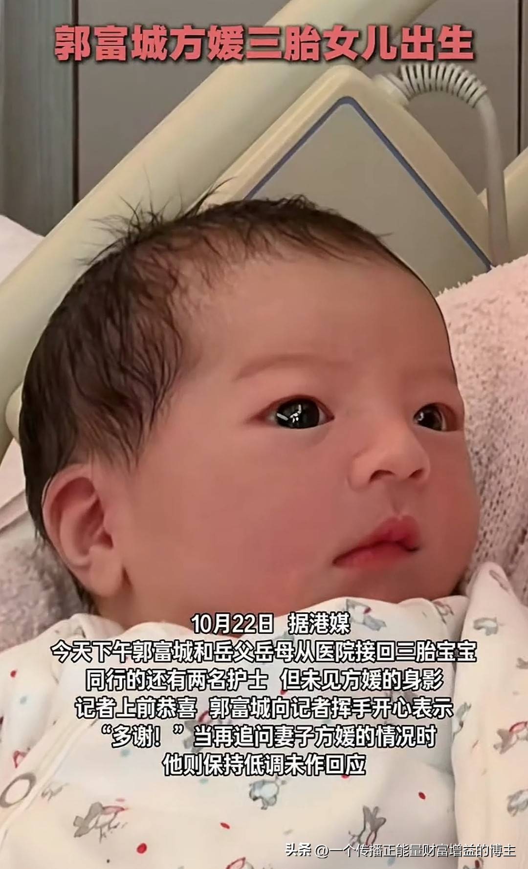 昨日下午,香港养和医院前,郭富城怀抱着刚出生的宝宝,温馨的画面让无数人感动。妻子方媛顺利产下他们的第三个孩子,这一喜讯也正式得到了确认。现场,郭富城小心翼翼地照顾着怀中的婴儿,岳父岳母全程陪伴着他们,显得格外温馨。然而,刚刚经历生产的方媛始终未曾现身,这一幕让这份喜悦中多了一丝牵挂和关切,也让祝福的声音显得格外真诚。